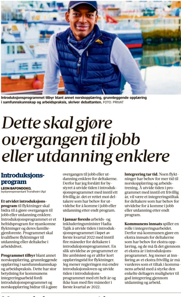 I januar foreslo arbeids- og inkluderingsminister Hadia Tajik å utvide tiden i introduksjonsprogrammet i løpet av første kvartal 2022 med inntil fire måneder for deltakere i introduksjonsprogrammet. En slik utvidelse av programmet er lite ambisiøst og er altfor kort opplæringstid for flyktninger. Jeg mener regjeringen må endre integreringsloven § 13 og utvide tiden i introduksjonsprogrammet med ett helt år og ikke kun med fire måneder i første kvartal av 2022.