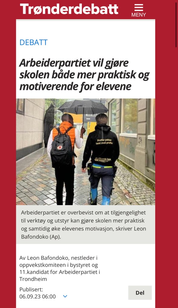 Leon Bafondoko, nestleder i oppvekstkomiteen i bystyret og 11.kandidat for Arbeiderpartiet i Trondheim